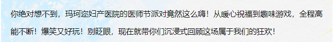 你绝对想不到,玛珂迩妇产医院的医师节派对竟然这么嗨!从暖心祝福到趣味游戏,全程高能不断!爆笑又好玩!别眨眼,现在就带你们沉浸式回顾这场属于我们的狂欢!