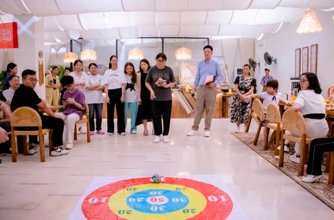 幸福是星空大海,更是数不尽的人间浪漫!医师们愉快享用晚宴,欣赏海边美景,还玩起了快手夹球、极速纸杯、沙包投掷等互动游戏,玛珂迩还为大家准备了精美礼品,现场气氛轻松融洽,节日氛围浓厚。