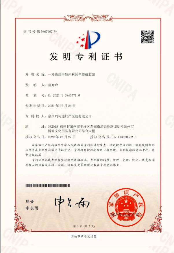 科技是第一生产力,人才是第一资源。玛珂迩妇产医院始终将“人才强院、科技兴院”作为核心战略,自建院伊始,就与美国匹兹堡大学开展深度合作,以学科建设为抓手,致力于医疗、教育、研究三位一体的协同发展。此次获奖不仅是对我院医疗器械研发实力的认可,更是对医院在提升医疗服务质量方面不懈努力的肯定。